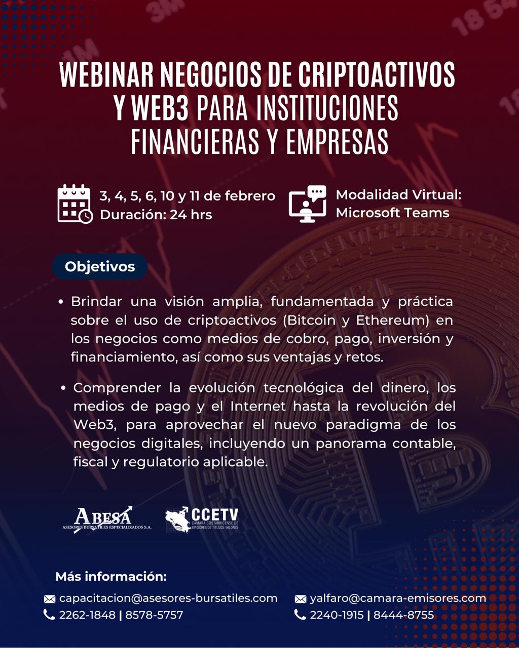 Webinar Negocios de Croptoactivos y Web3 para Instituciones Financieras y Empresas.